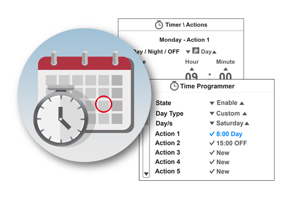 TimerDer Timer kann je nach dem Wochentag das Gerät ein- und ausschalten. Der Benutzer kann entweder die TAG oder die NACHT Modi auswählen, jeweils mit seiner eigenen Solltemperatur.